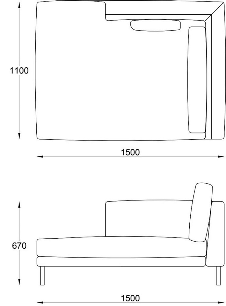 • Модуль лежанка Light левая 1100х1500хH670
