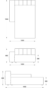 • Лежанка с подлокотником правая 1250х1850хН680