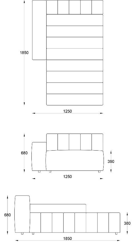 • Лежанка с подлокотником левая с отстрочкой 1250х1850хН680
