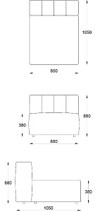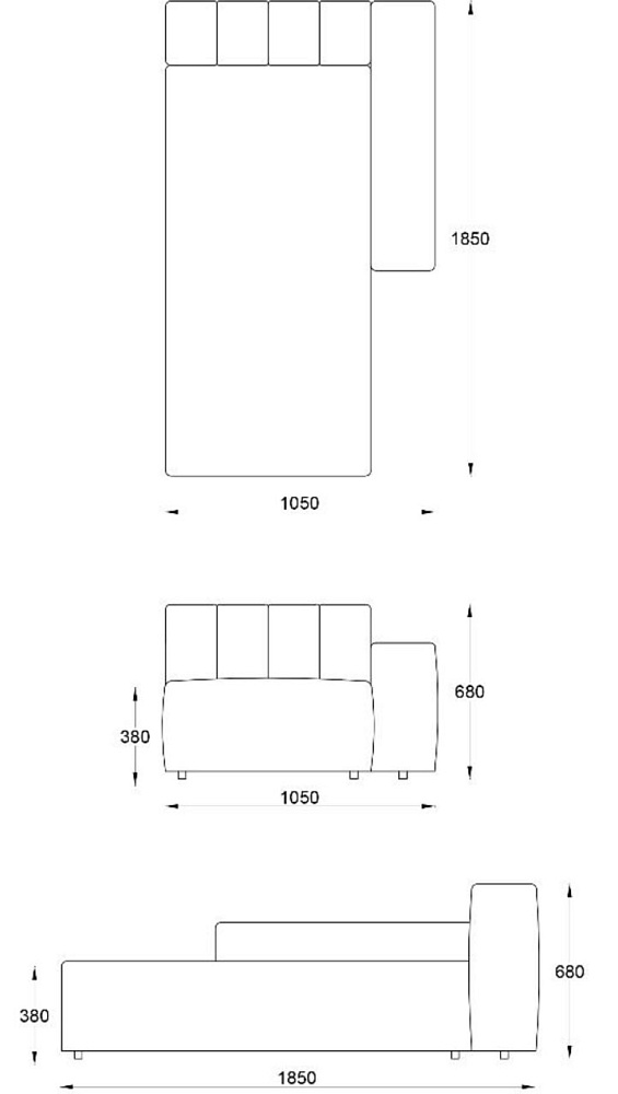 • Лежанка с подлокотником правая 1050х1850хН680