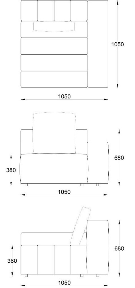 • Угловой модуль правый с отстрочкой 1050х1050хН680