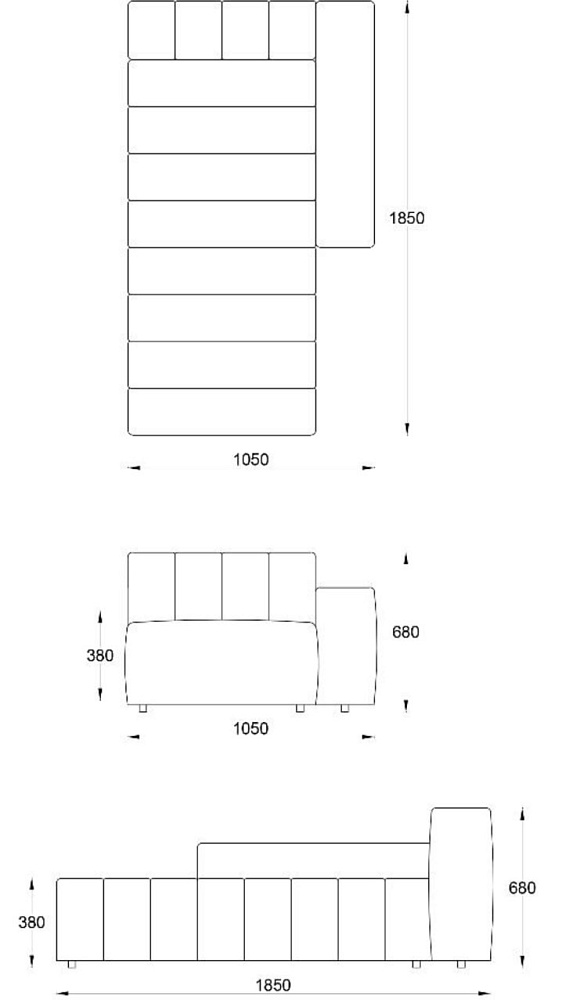 • Лежанка с подлокотником левая с отстрочкой 1050х1850хН680