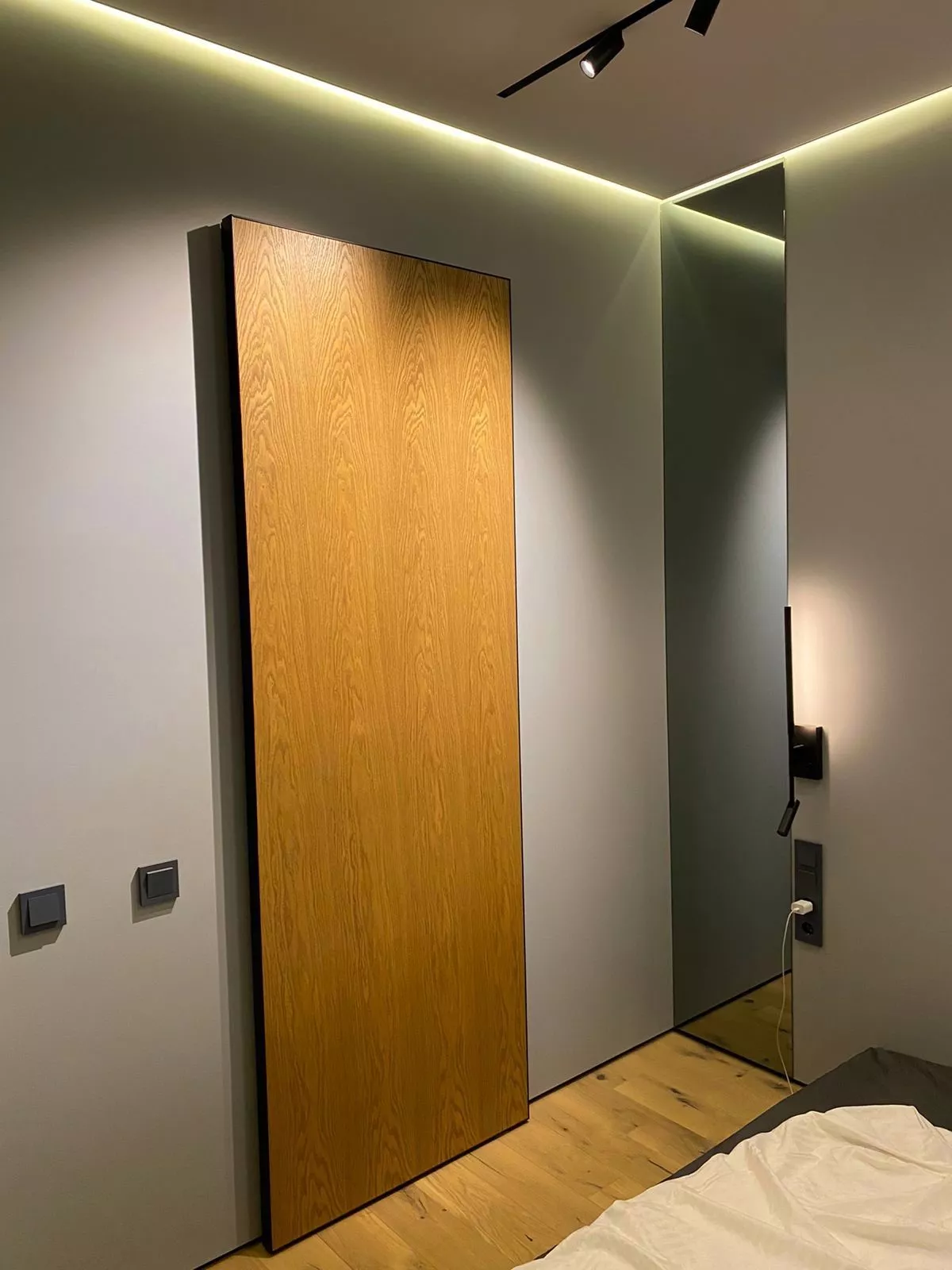• Для дверей-невидимок необходим монтаж скрытого короба на черновом этапе работ – до окраски стен.